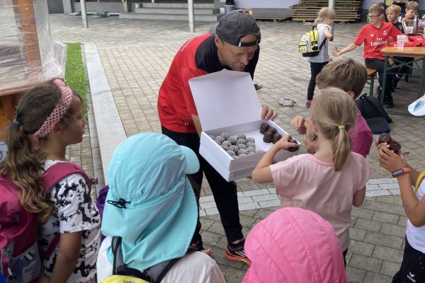 Geschickt, motiviert und beinah unerschöpflich waren die Kinder an den Bällen in den unterschiedlichsten Größen zugange – da bekommt man schon ordentlich Hunger… Am Schluss gab es noch eine süße Überraschung von unserem Obmann Franz Pichler!